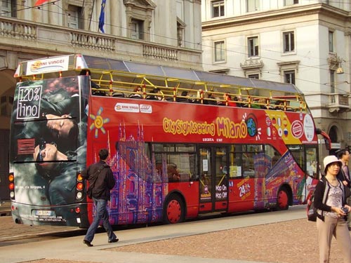 Экскурсионный автобус. Наземный городской транспорт Милана представлен развитой сетью трамвайных, троллейбусных маршрутов. -